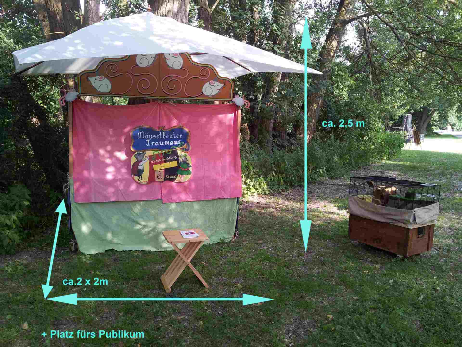 Für Bühne und Aufführungen davor brauchen wir ca. 2 x 2 Meter.